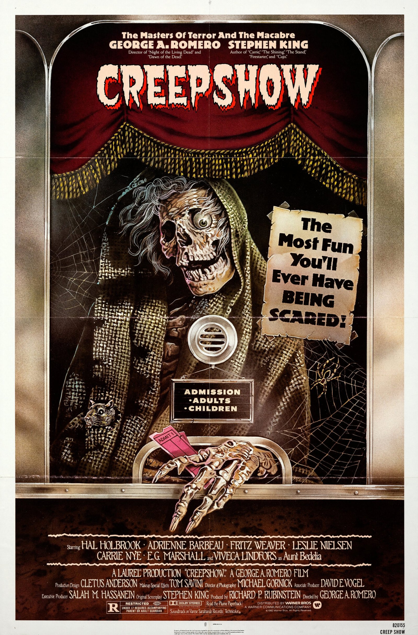 Starring Adrienne Barbeau, Hal Holbrook, Fritz Weaver, Leslie Nielsen, Carrie Nye, E.G. Marshall, Viveca Lindfors, Ed Harris, Ted Danson, Stephen King, Warner Shook, Robert Harper, Elizabeth Regan, Gaylen Ross, Jon Lormer, Tom Savini, and Marty Schiff. Directed by George A. Romero.