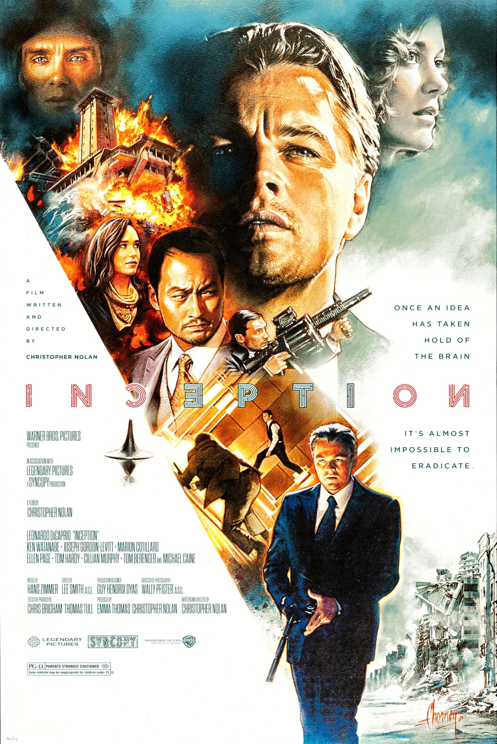 Starring Leonardo DiCaprio, Joseph Gordon-Levitt, Elliot Page, Tom Hardy, Ken Watanabe, Marion Cotillard, Michael Caine, and Cillian Murphy. Directed by Christopher Nolan.